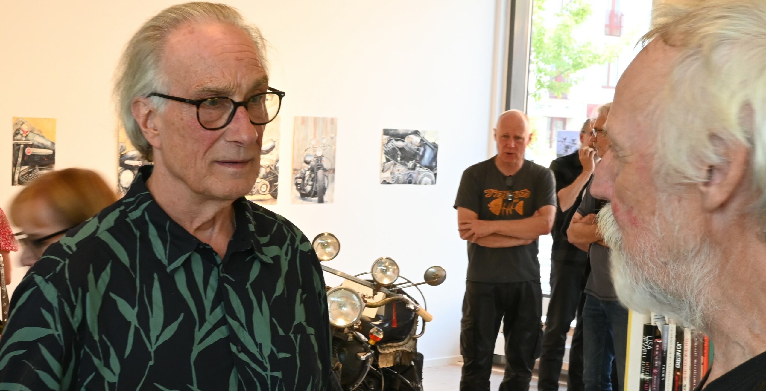 John Eyres konstutställning Wabi Sabi on Wheels öppnade lördagen den 7 september på Vallentuna kulturhus och bibliotek. Adressen är Allévägen 1. Utställningen hänger till och med den 13 oktober. På vernissagedagen var det fullt ös med mängder hojåkare i det sommarlika höstvädret.