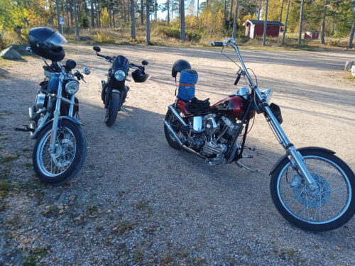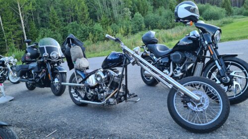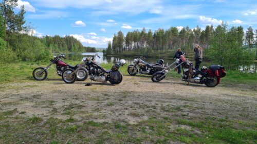 3 Juli, CR En tur upp till Umeå Bike show i goda vänners lag med tält övernattning på Norrskens sommar fest i Tavelsjö. Text Helén Wester.