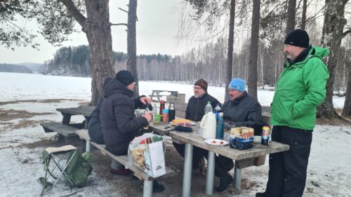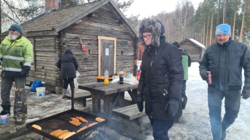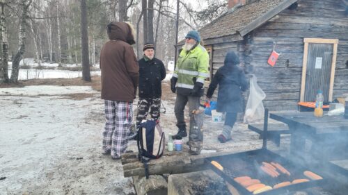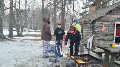 3 December, Vi blev några till slut som trotsade det lite kyliga vädret på lunchgrillningen idag. Tack till er som kom. Från vänster: Helene Brännmo, Lars Backlund, Anders Sundqvist, Anders Bergkvist och LO-I Agne Sjölander. Text Agne Sjölander.