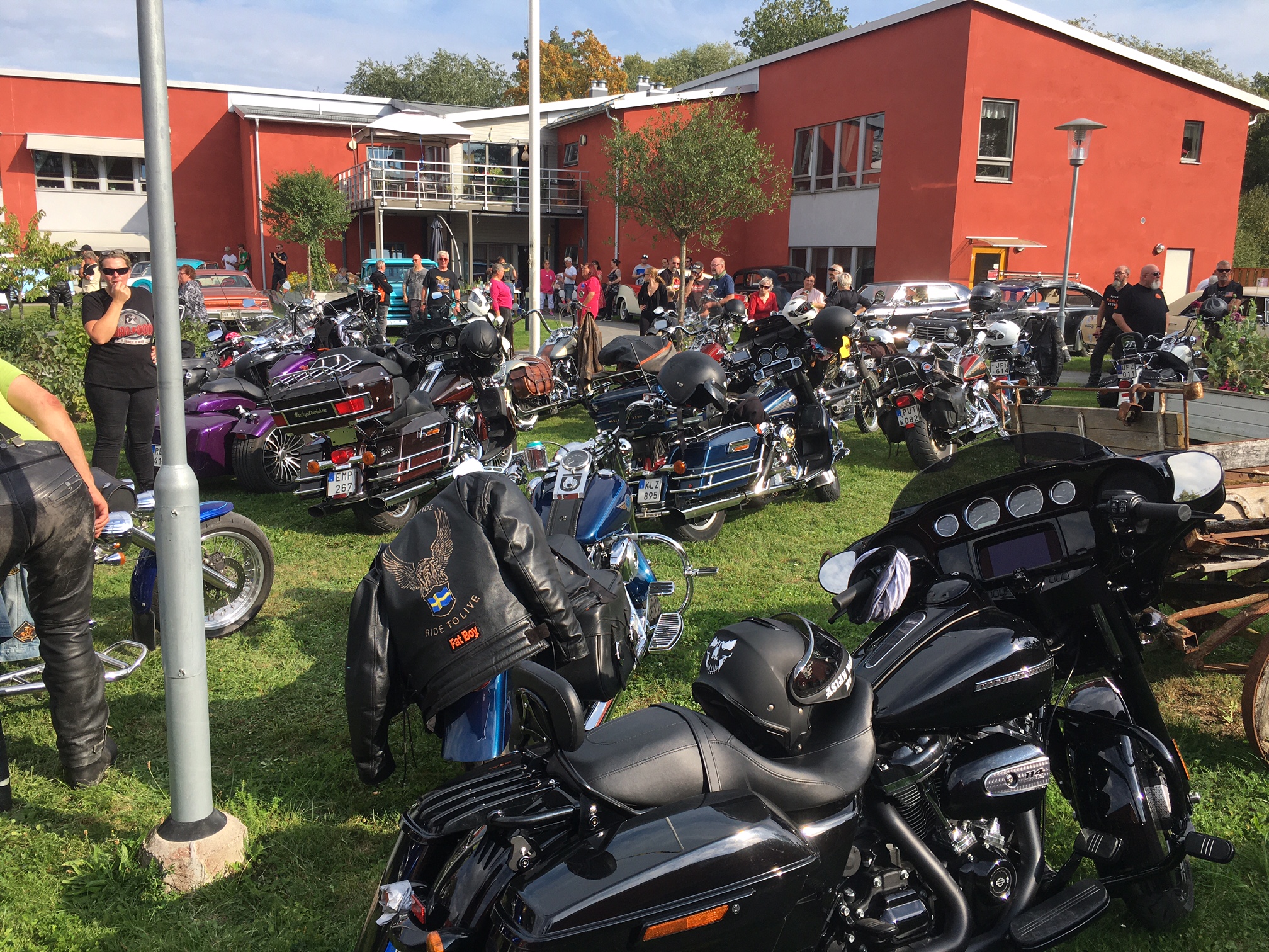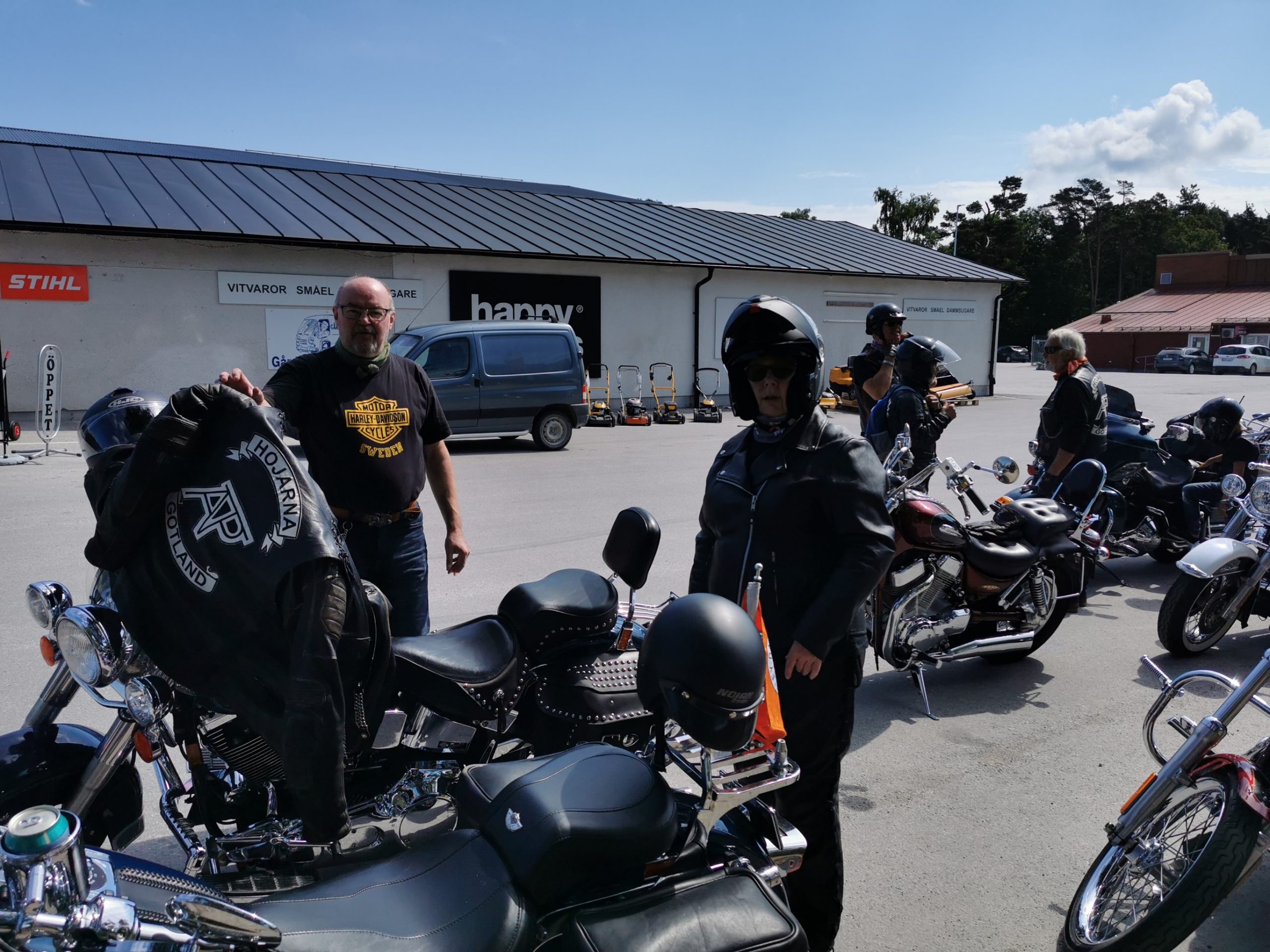 Hojtur som gick från Visby via Västerhejde, Stenkumla, Träkumla, Buttle, Ala och fika hos Espegards i Ljugarn, sen vidare mot Roma äldreboende där andra motorfolk slöt upp för att visa gamlingarna lite sköna fordon.