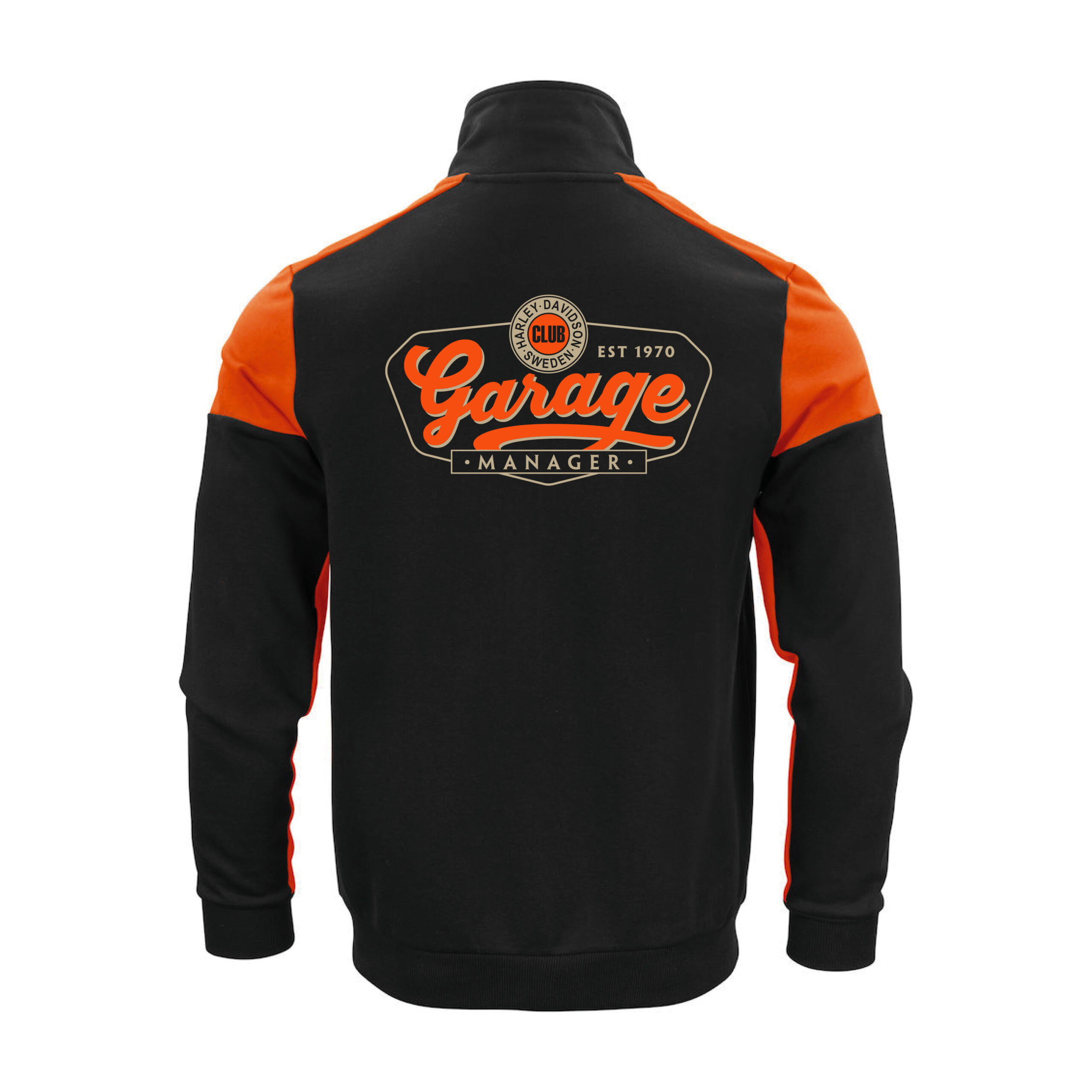 Färg: Tvåfärgad collegejacka (svart och orange).